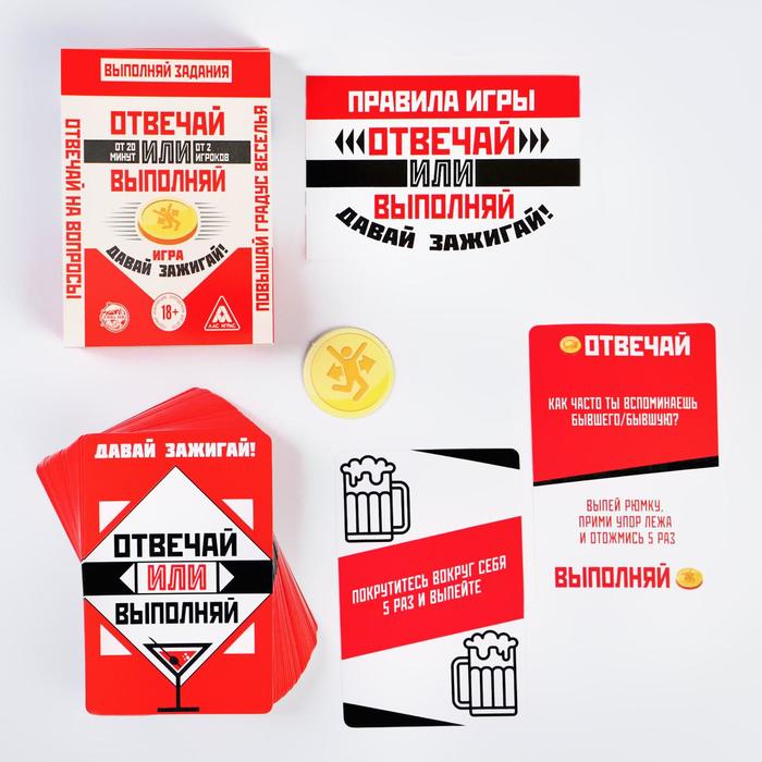 В колоде есть 2 вида карт: одни содержат смешные задания, другие — пикантные вопросы. Отвечать честно или импровизировать, выбирать вам. Главное, чтобы было очень весело!