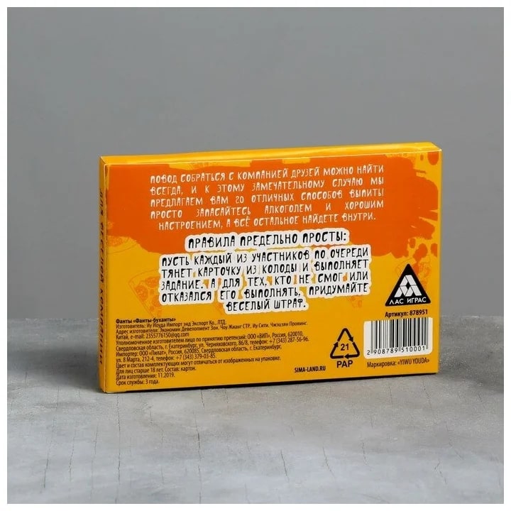 Купить игра для компании "фанты буханты" 20 карт от 100 руб. с доставкой до пункта выдачи в Апатитах. Интернет магазин ДекаМаркет. Оплата при получении.